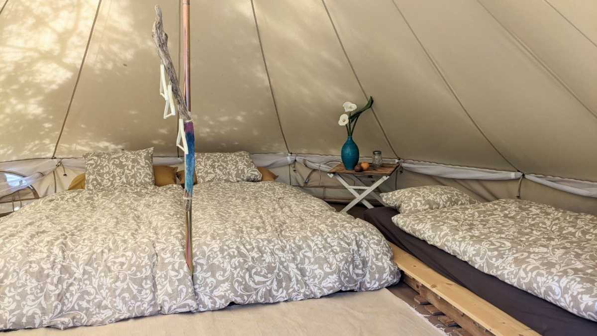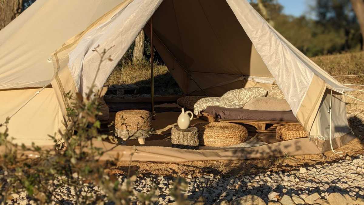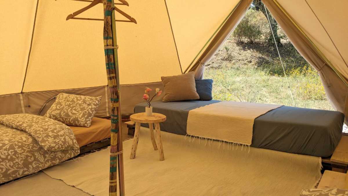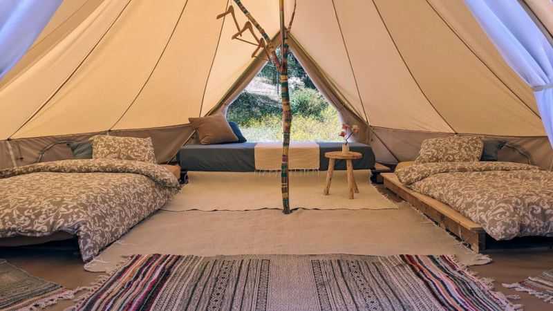 Nestled in an exceptionally serene and enchanting corner of our property, our glamping tents offer a simple yet comfortable accommodation option.